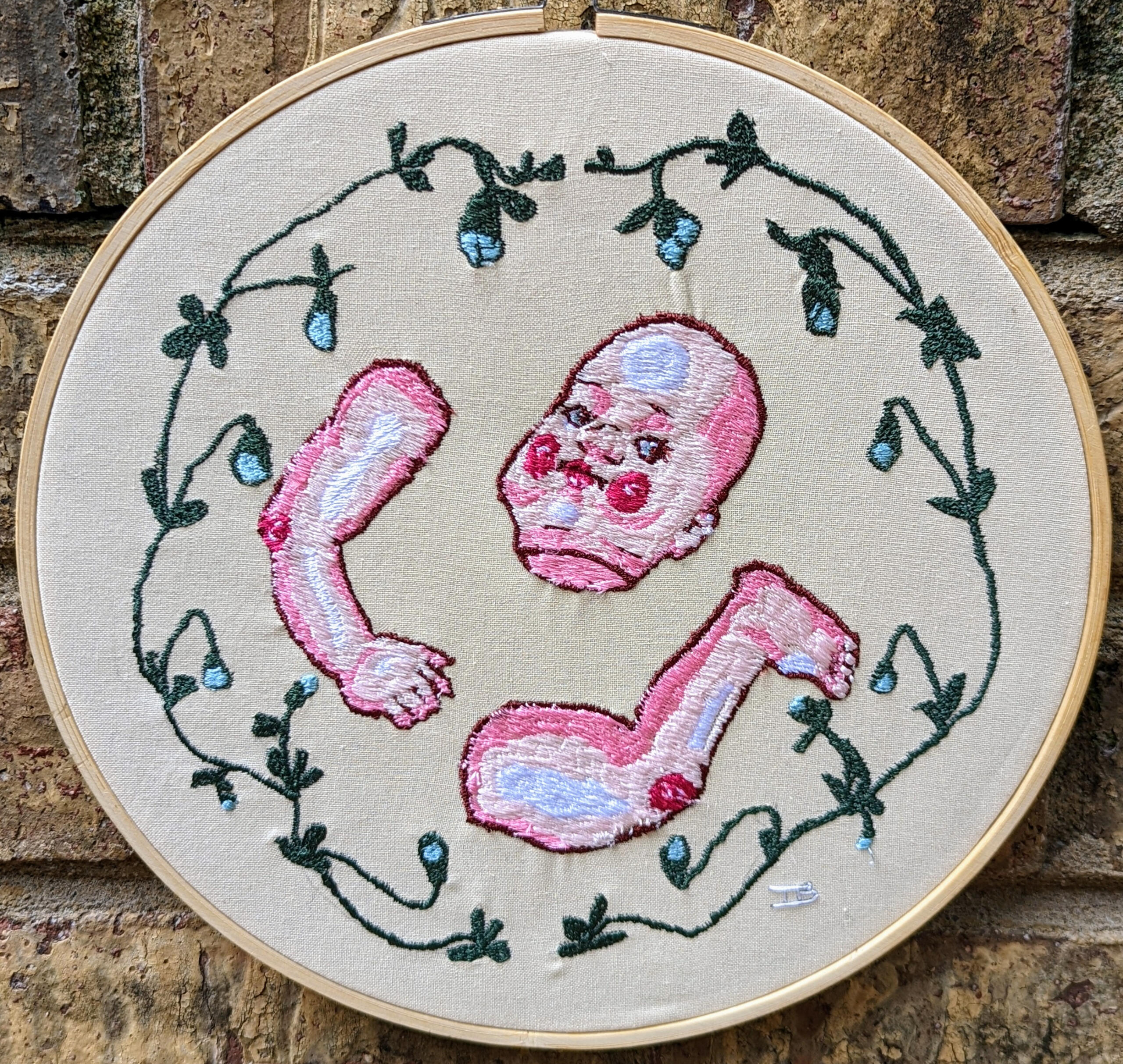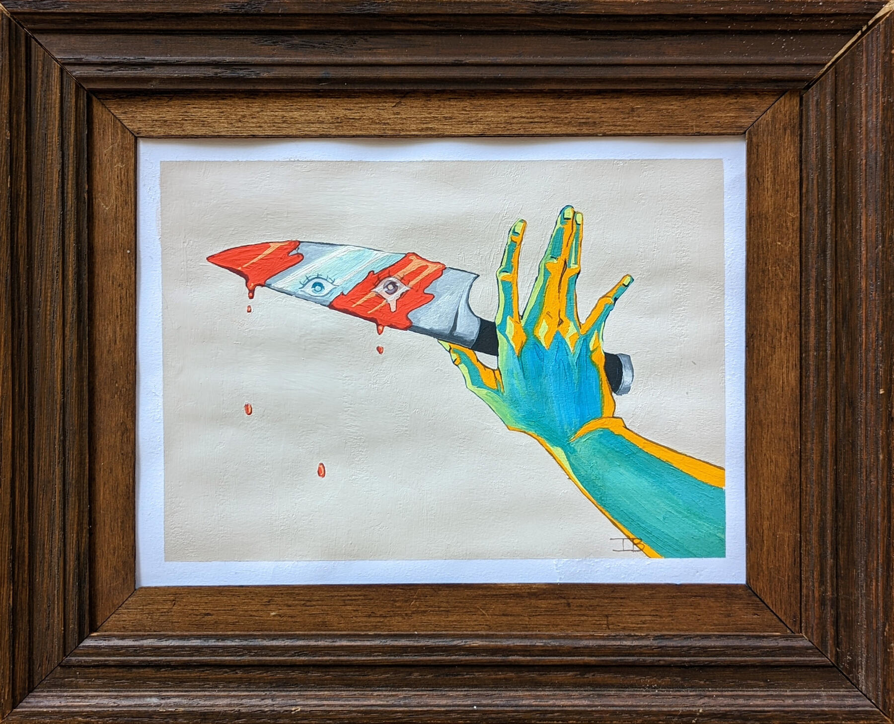 All art has meaning. I cannot deny that, no matter how much I avoid the question. An ambiguous art piece’s meaning can come from the historical context of the time the piece was created, the experiences the artist has had that affected them subconsciously, or frustrations and passions of the artist. I am accepting that this is true of myself. I am passionate about music, art history, horror media, and not following gender binaries. I am frustrated by the lack of action against hatred, against climate change, against violence. If one is to deeply analyze my work, they might see some of these frustrations peeking through. But first and foremost, they will see my five major influences: