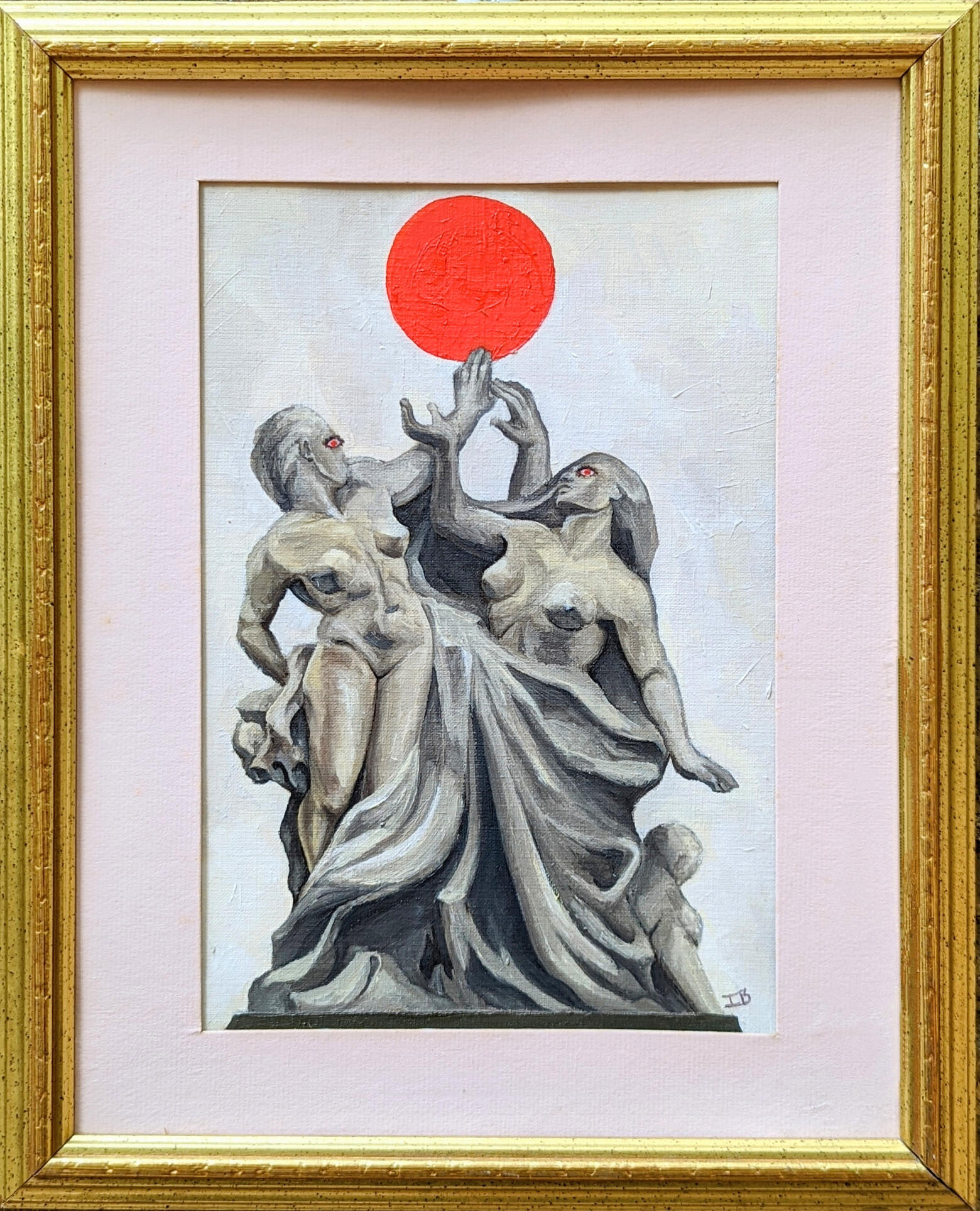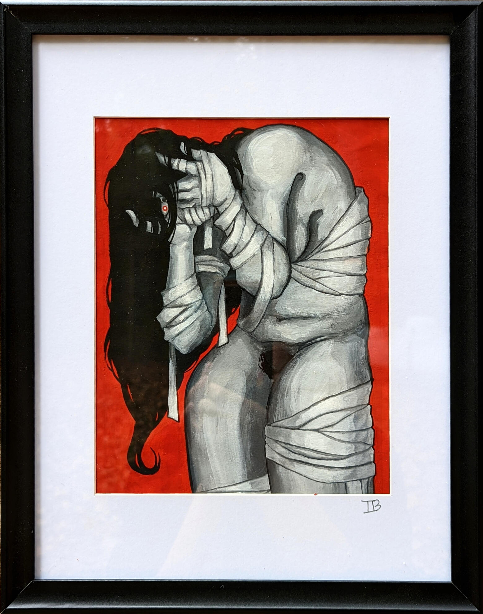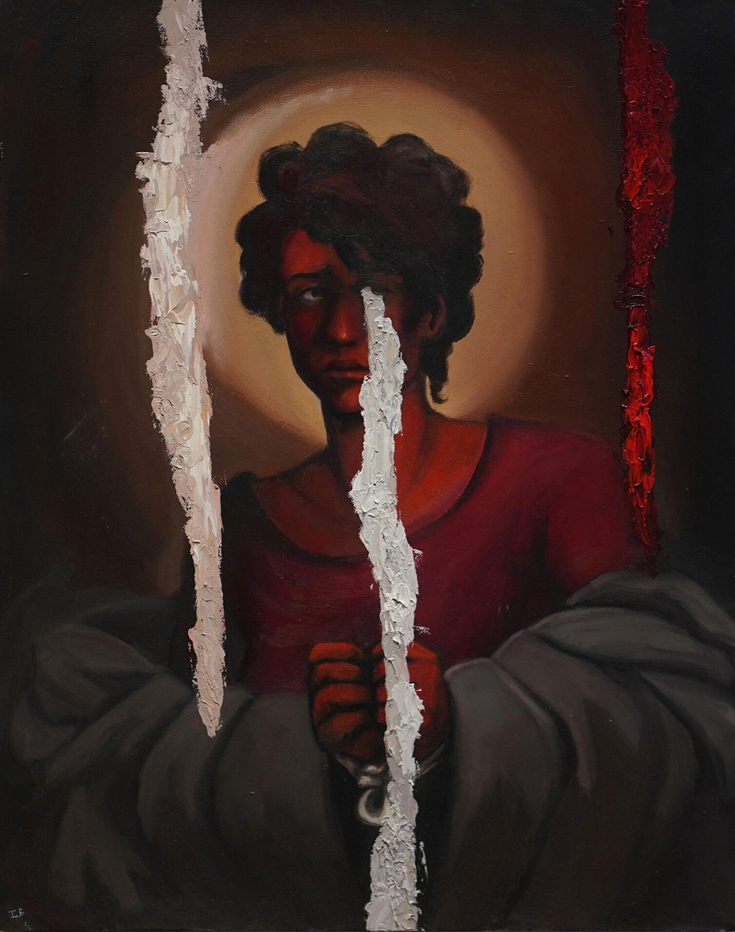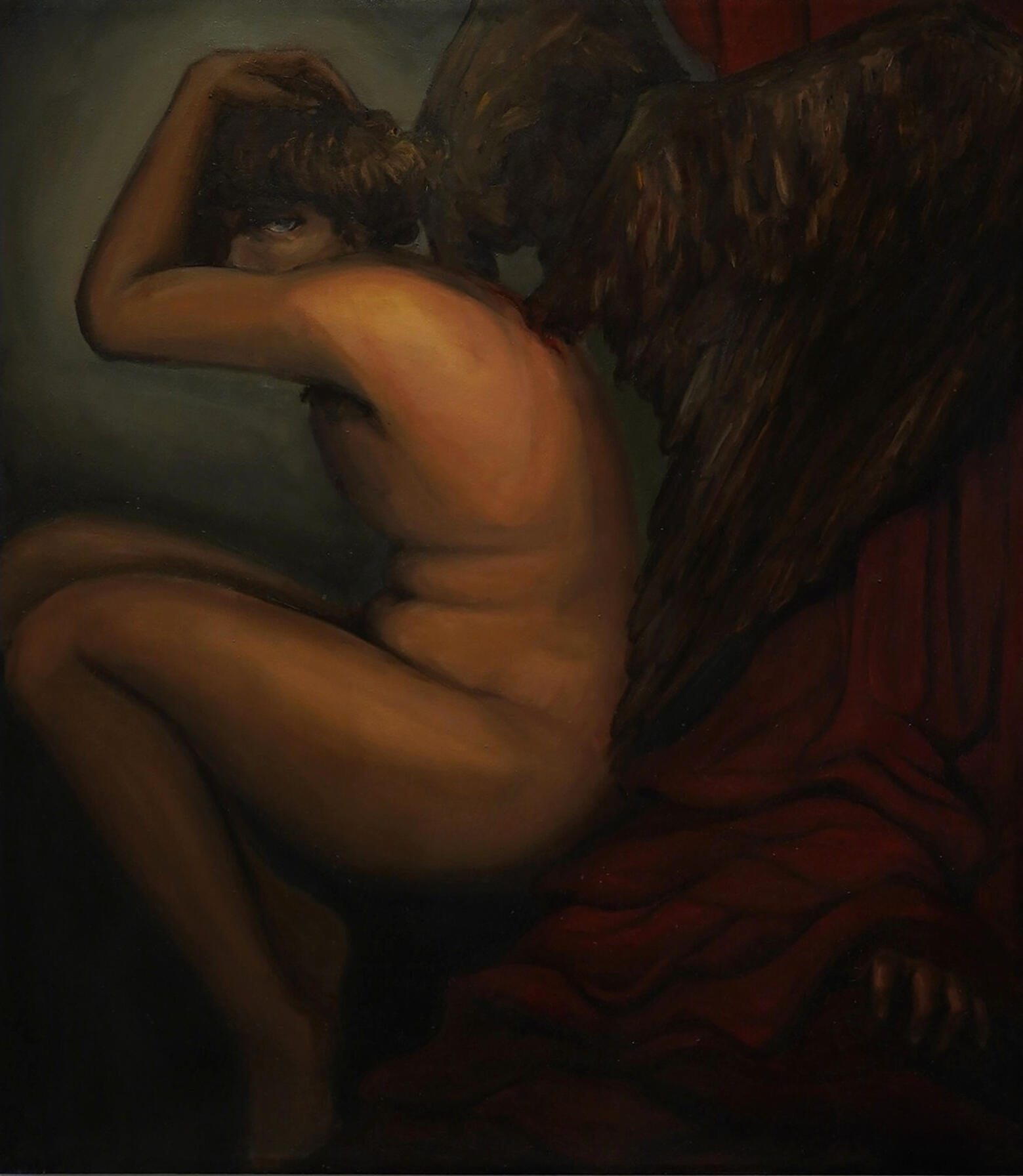 I prefer to paint non-real people, because they can act as both extensions of myself, and embodiments of the human condition. My reactions to real world issues help fuel emotion into my work, whether it be disappointment, melancholy, or disjointedness. Music influences the tone in my work and helps to kickstart my brainstorming process. I have a deep love and fascination for historical art, especially in the Baroque period. This inspiration lends to my choice of color and composition. Horror media is my final influence. This inspires a lot of my more unnerving subject matter. I can’t say why I am fascinated by the ominous, but I just find the combination of beauty and oddity creates an interesting sense of uneasiness and isolation, especially when portrayed subtly.